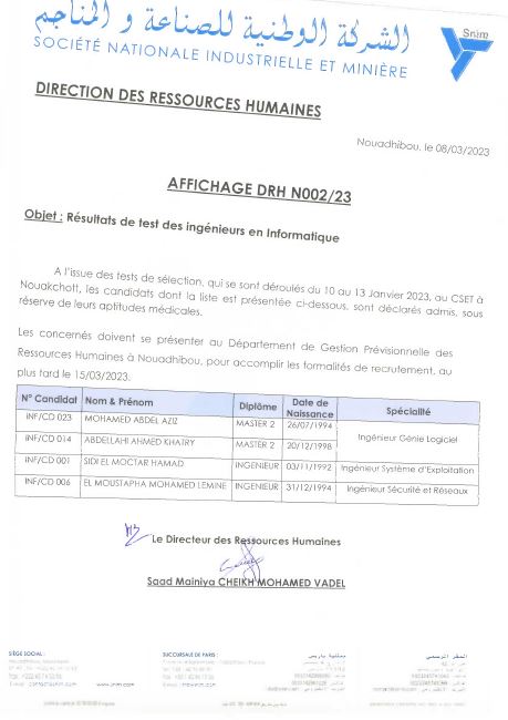 Résultats des tests informatiques Recrutement / March 08, 2023 Merci de consulter la note DRH relative aux résultats des tests informatiques Télécharger la note ici